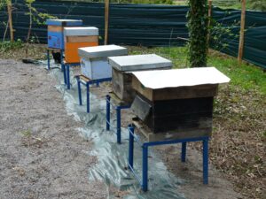 Il y a 3 ruchers école dans la Manche et le lycée en accueille un qui compte 10 ruches sur l’exploitation et 4/5 dans le verger. Chaque ruche produit environ 30 kilos de miel par an, donc environ 450 kilos de miel produit sur l’ensemble du lycée. Les abeilles utilisées dans l’exploitation sont des abeilles noires. Sur le site de l‘établissement, nous faisons attention à la protection des abeilles, donc nous n’utilisons pas d’insecticides ou de manière très raisonnée car le lycée est dans une démarche agroécologique.