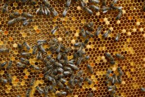 L’intérieur de la ruche est composé de rayons formés par des cellules hexagonales de cire d’abeille. Les abeilles utilisent ces cellules pour le stockage de la nourriture (miel et pollen), et pour le renouvellement de la population (œufs, larves et nymphes).